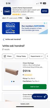 Oak handrail like new 8 foot long. It has a medium stain with no scratches. Same handrail at Lowes for $121. I will remove ad after it’s sold. Ok to text me at (314) 3six9-0723. Thanks!
