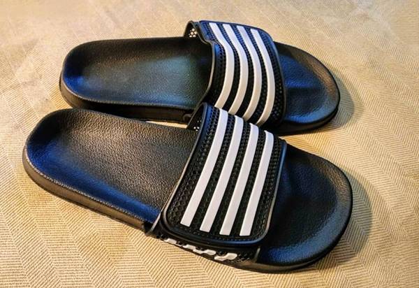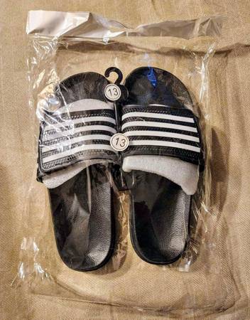 Mens NEW Striped Sandals- Black W/White Stripes, Size 12-13, SELL $15