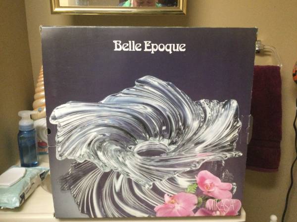 We also have a matching swirled Mikasa glass bowl that is 12 1/2” wide for $12 or both for $25.
