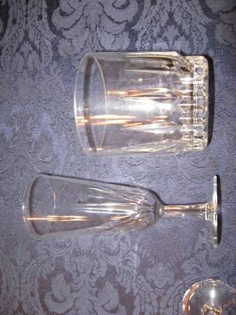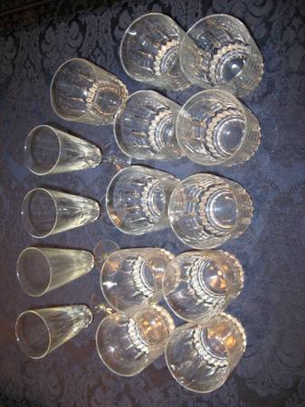 Matching Arcorac glassware, 11 on the rocks glasses and 4 cordial/wineglasses, $12.00.