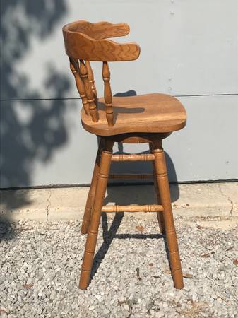 Solid oak wood , swivel stools, 30 inches high. Like new