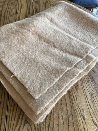 #31 VINTAGE Bedspread /Blanket Twin 71" x 45" Tan w/Strip of golden color, GREAT SHAPE. I live close to south county mall in Oakville. I prefer text or call please, thanks.