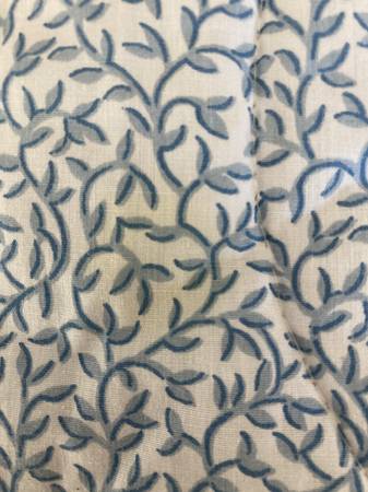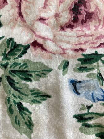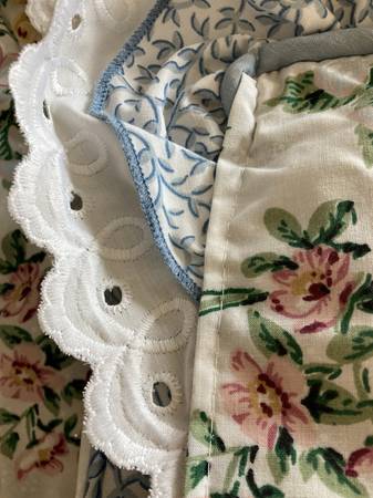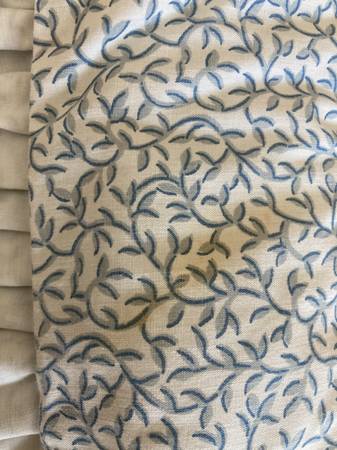 #5 Full Size Bedspread 75" x 85" ruffle is an additional 3 1/4". One side is white with blue. Other side is floral. Like new except, on white and blue side 2 faded yellowish areas and 2 faded yellowish dots (hard to find). I live close to south county mall in Oakville. I prefer text or call please, thanks.