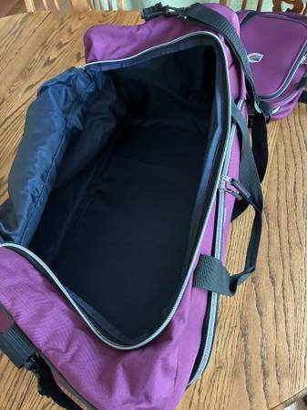 Price for set. Duffel Bag or/carry-on (Like New) and Travel Bag (New) Plum /burgundy color. Beverly Hills Country Club.