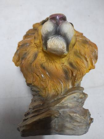 Used - excellent condition. There is a small scratch on the right eye of the sculpture, but it is not easily visible. Some areas look like the coloring has rubbed off, but this is a metallic highlight. The back of the sculpture shows carve marks and is intentionally unfinished.
