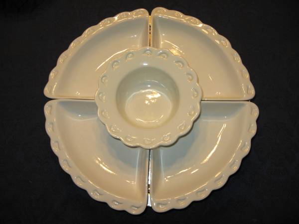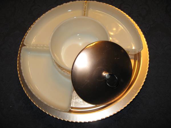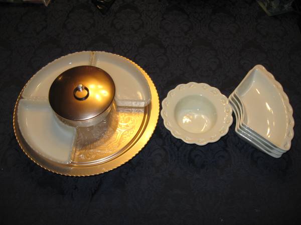Vintage Lazy Susan relish trays used at Christmas for olives, pickles, celery sticks, radishes, dip, etc.