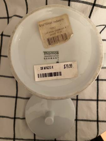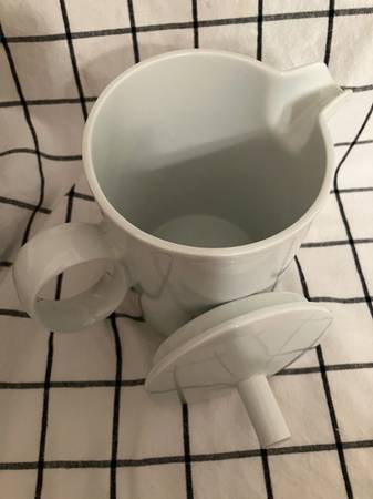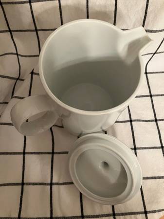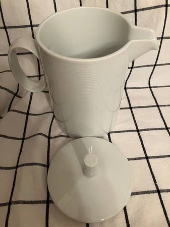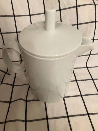Brand new (NWT) 38 oz. Thomas Rosenthal Loft white coffee pot. Made in Germany. Sleek, modern lines. Selling on Replacements dot com for $74.95 + tax, plus shipping and handling.