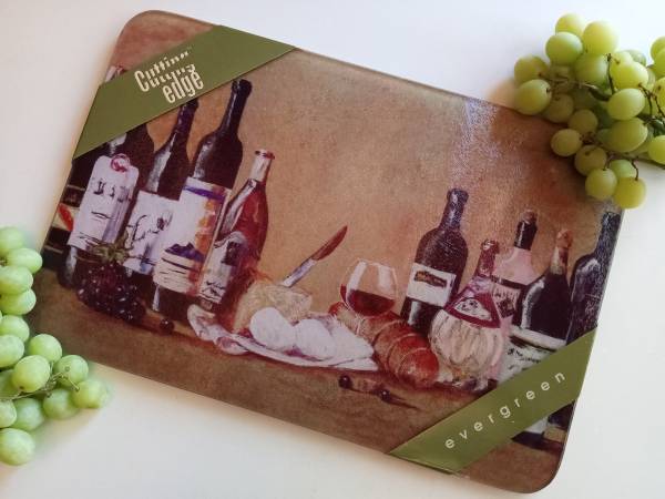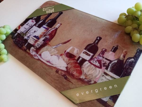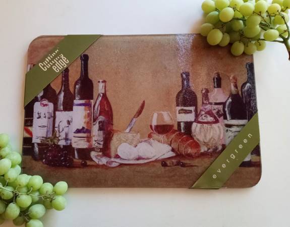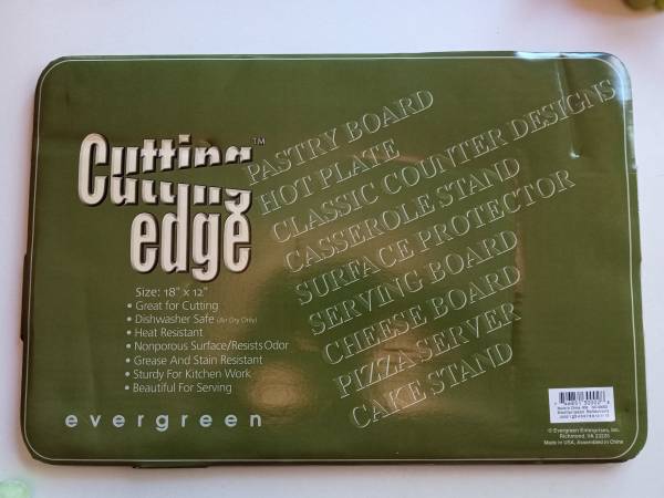 17 7/8" x 12" Excellent condition: no chips, scratches, cuts, cracks, nicks or marks. Tempered glass cutting board. Heat resistant / dishwasher-safe. Use as charcuterie board / serve ware / cutting...