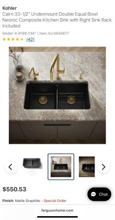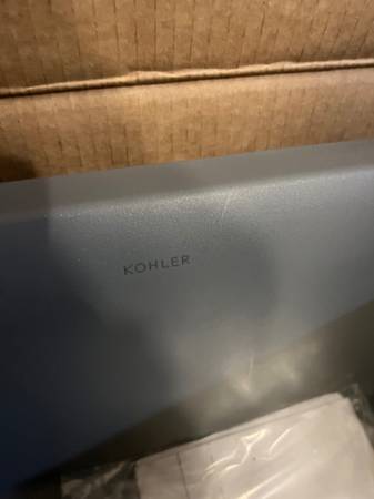 This sink is brand new in the box. The only thing is that there’s a teeny tiny scratch, right above the “Kohler” logo on the back of the left bowl (see last picture). It’s pretty insignificant, but we got a replacement and they didn’t want this one back. So ta-da! You get a great deal :-)