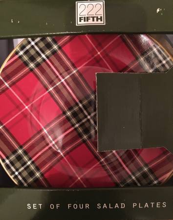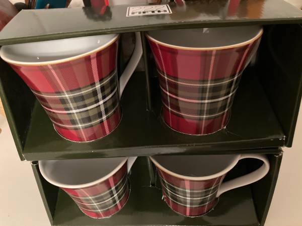New in boxes: 4 tartan dinner plates 11” 4 tartan salad plates 9” 4 tartan mugs Selling all together. Stored in non smoking home. In person, exact change, cash transaction only. Thank you. Plaid...