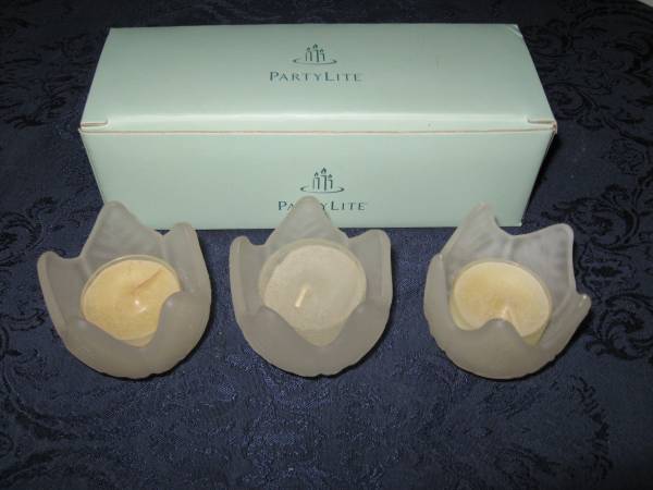 Frosted Lotus Trio comes with three tea light candles, $5.00.