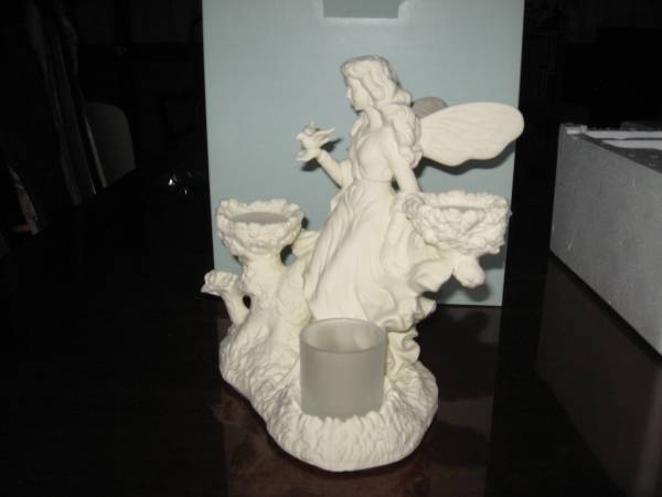 Ariana's Garden bisque ceramic Fairy 3 tea light candle holder, $15.00.