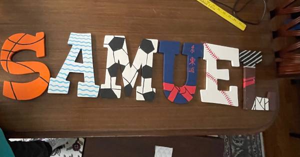 Wooden Letters That Spell Samuel Can Be Held With Nail or Velcro Picture Hanger Each Letter 9 3/4 Inches High The Width Will Vary Per Letter Non Smoking Home