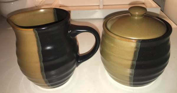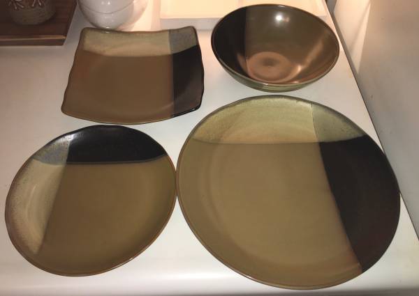 Gorgeous set! I simply don’t have the space to keep it! Earth tones of black, sand, and grey. Sells for much more on other sites, per piece or per setting.