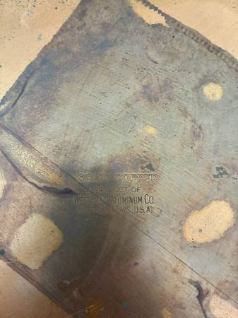 $30 12 1/2" Diameter x 1 5/16" deep - Stamp on back - SOLID COPPER, a product of West Bend Aluminum Co.
