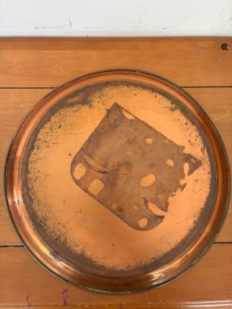 $30 12 3/4" Diameter x 15/16" deep - Stamp on back - SOLID COPPER W (B?)