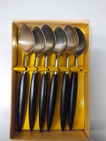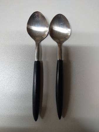 Vintage Stainless Steel Plastic Handle Miniature 4-Inch Spoons - 6 pc Plastic-handled miniature spoons with fat teardrop-shaped spoon bowls. Spoons are of two lengths - 3 of each, specified below....
