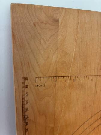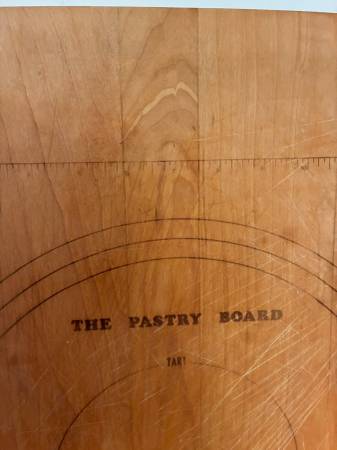 Vintage "The Pastry Board" Wooden w/Imprinted Measurements. "CCI" 22" tall x 16" wide and 3/4" thick. Wooden kneading pastry board w/measurements for pastry baking. Also straight measurements on the side. Wear and cooking spots, stains cut marks from use. Ilve close to south county mall in Oakville. I prefer text or call please, thanks.