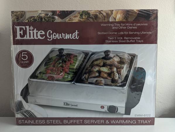 Brand New Factory Sealed Elite Gourmet by Maxi-Matic Stainless Steel Buffet Server Warming Trays.