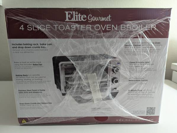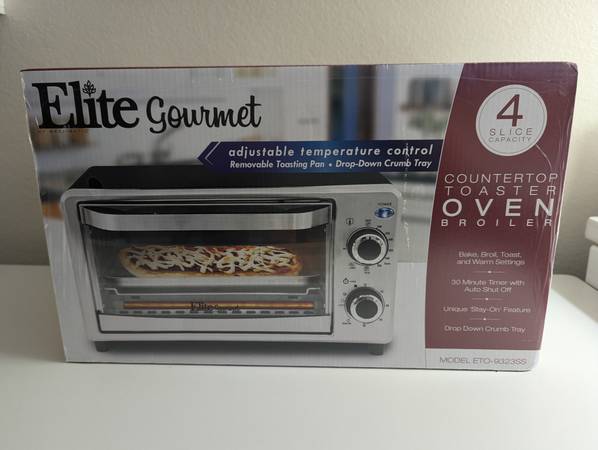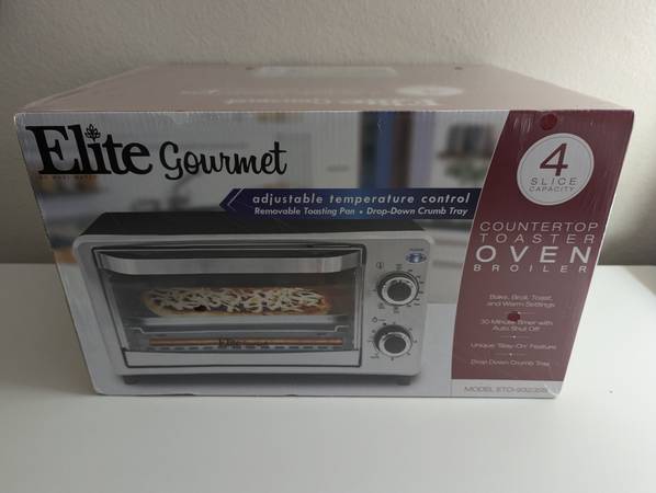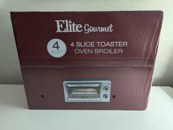 New Factory Sealed Elite Gourmet by Maxi-Matic Countertop 4-Slice Toaster Oven Broiler. Model # ETO-9323SS