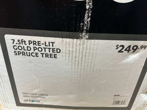 At Home Gold Potted Spruce 7.5 ft Pre-Lit Christmas Tree. Very Well Made.