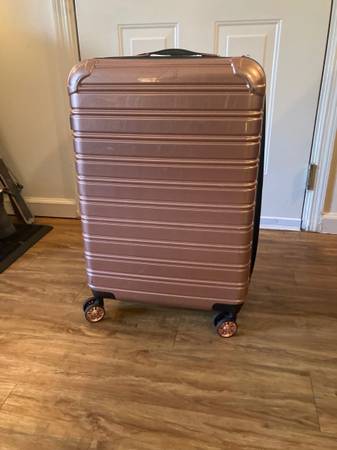 Petty pink color. I’ve only used it 4 times. 360 Turning. Telescope Handle. Rolls very smoothly. Zippers work well and it’s expandable if more room is needed.