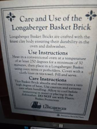Longaberger Button Basket Brick. Brand New. Never Used. Smoke free / Pet free Home. Pick up in Waterloo. POOS