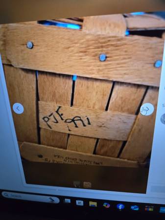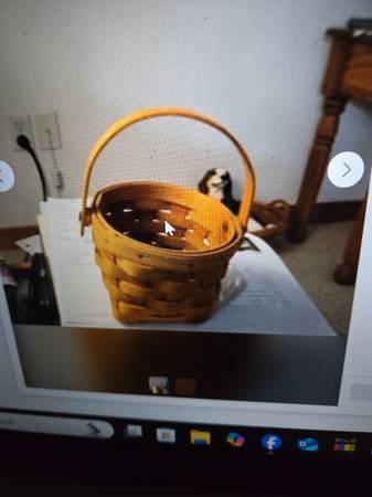 Longaberger Small Peg Basket Signed 1991. Never Used. 5" Round x 4 1/2" tall without handle Pick up in Waterloo. POOS