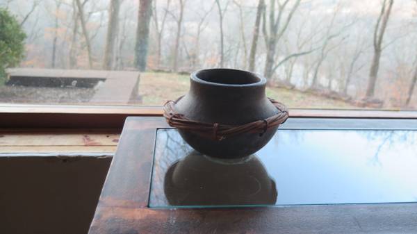 I HAVE A COPPER MUG WE USED AS A DISPLAY PIECE. IT IS APPROXIMATELY 8 INCHES TALL - ASKING $10. I ALSO HAVE A NICE PIECE OF POTTERY, BROWNISH WITH A BAND OF WICKER GOING AROUN IT. IT IS...