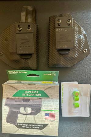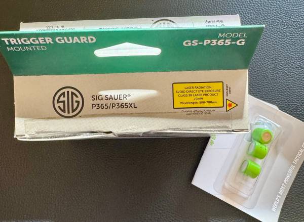 LASER MAX GREEN LASER GRIP SENSE SIG SAUER P365/P365XL GS-P365-G WORKS GREAT & 2 RIGHT HAND CUSTOM MADE JUST HOLSTER IT CARBON FIBER KYDEX HOLSTERS MADE FOR THE LASER MAX (1 INSIDE THE WAIST & 1 OUTSIDE THE WAIST) PLUS SPARE BATTERIES!