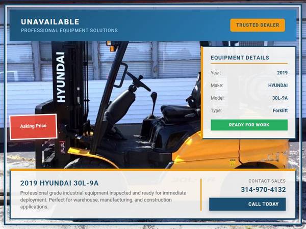 PICTURE 2 SPECIFICATIONS: Make/Model: Hyundai 30L-9A Year: 2019 Lift Capacity: 6,000 lbs Fuel Type: LP Gas Subcategory: Pneumatic Tire 4 Wheel Sit Down Mast Configuration: Three Stage Mast Height: 86 / 185 in Side Shifter: Equipped Operating Hours: 4,101 Condition: Used Stock Number: RHYU191 Additional Notes: Rental Specs
