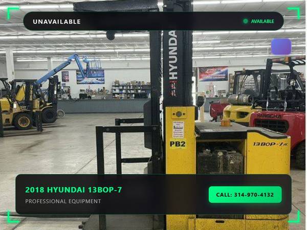 PICTURE 17 SPECIFICATIONS: Make/Model: Hyundai 13BOP-7 Year: 2018 Lift Capacity: 3,000 lbs Fuel Type: Electric Subcategory: Electric Order Picker Mast Configuration: Three Stage Mast Height: 106 / 240 in Side Shifter: No Operating Hours: 5,290 Condition: Used Stock Number: HYU475 Additional Notes: Serviced And Ready!!