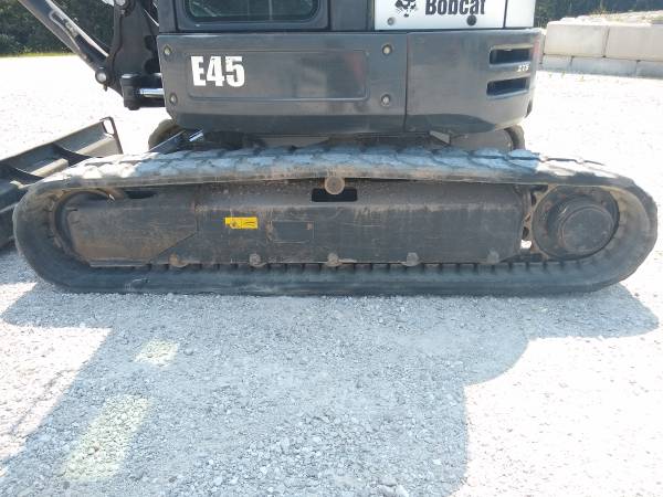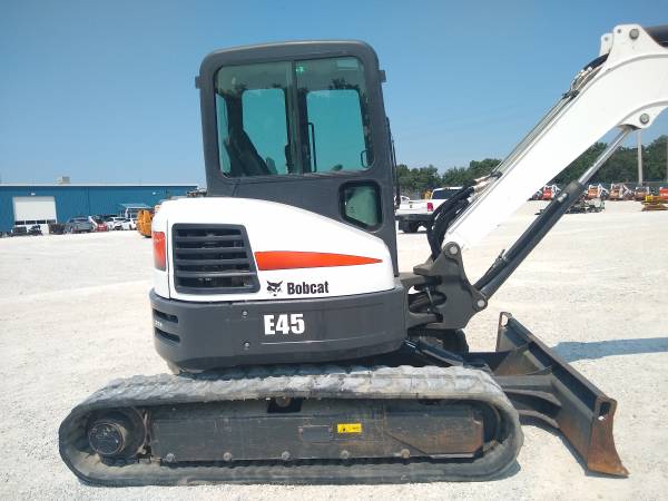 2017 Bobcat E45 mini, 42.7hp diesel, 2404 hours, Cab/heat/AC, hydraulic thumb, power coupler, 24" bucket. 10' 8" max dig depth, weighs about 10,500lbs. Starts and runs excellent, very nice excavator. Come check it out 636-856-8555. Full pictures, specs, and VIDEOs can be found at www.CraigEquipment.com.
