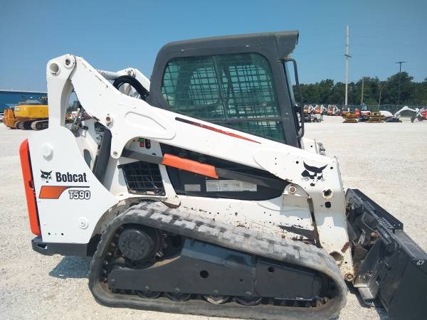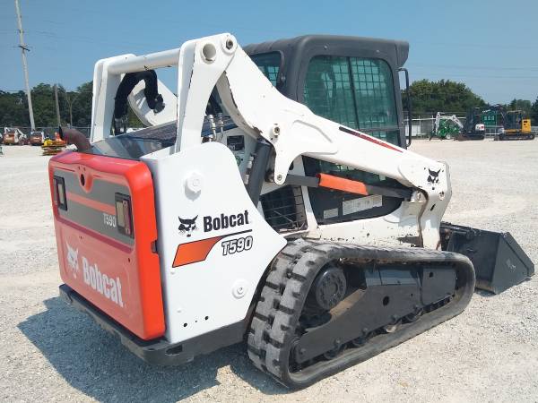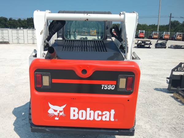 *** HIGH FLOW *** 2014 Bobcat T590, 66hp diesel, 3033 hours, Cab/heat/AC, selectable JOYSTICK controls, HIGH FLOW 17.1/26.7gpm, good tracks and bucket. Weighs about 7870lbs and has a 6000lb tip load. Starts and runs excellent -Come check it out 636-856-8555. Full pictures, specs, and VIDEOs can be found at www.CraigEquipment.com.