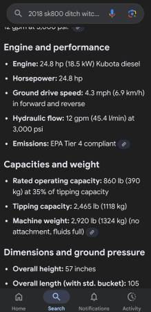 2018 Ditch Witch SK 800 with a 24.8 Kubota Diesel. This machine is a beast! 1156 hrs and one owner. All fluids changed this past January. Specs are attached with the picutures. Asking $18,500.