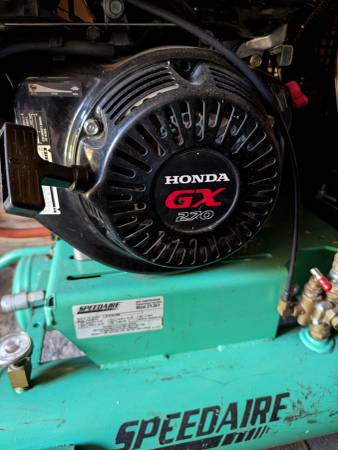 Speed air air compressor Honda gx270 engine, used for blowing out in ground sprinklers runs have extra chucks and filters plus hoses