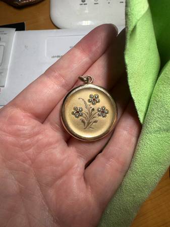 Beautiful Antique Gold Filled Seed Pearl and Garnet Floral Engraved Locket. Absolutely stunning! In good vintage condition, does show regular wear for age. Please view all photos. Pick up in Ballwin