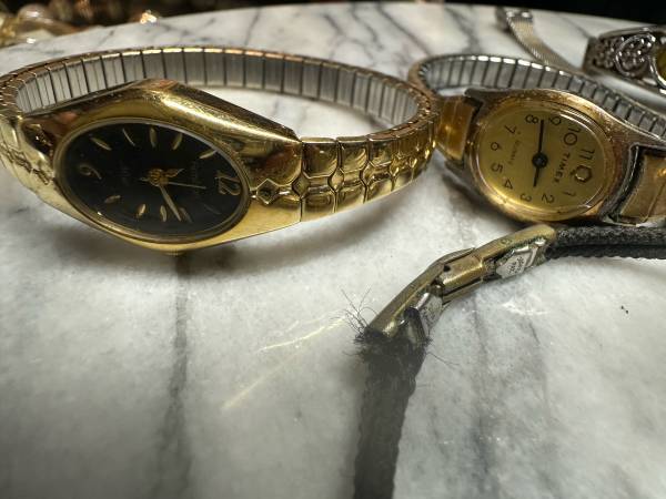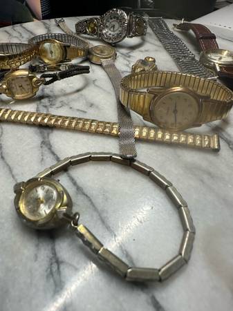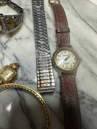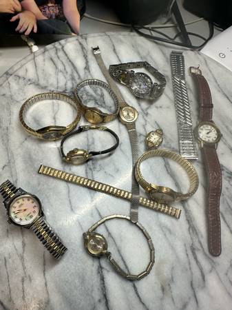 Vintage Women's Watches Lot, I know nothing about watches. Currently none of them are ticking, selling as is. Some names I noticed are caravelle, timex and bulova. Unknown condition, Porch pick up in Ballwin off New Ballwin Road & Manchester, cross posted on other sites