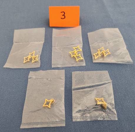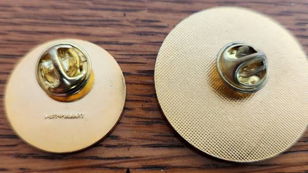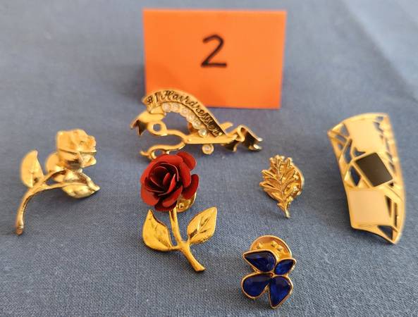 This is an assortment of clutch back jewelry pins in good condition. They are shown in groups and priced at $1 per pin. Most have no marking on the back. Detailed photographs of front and reverse...
