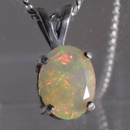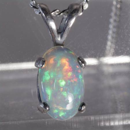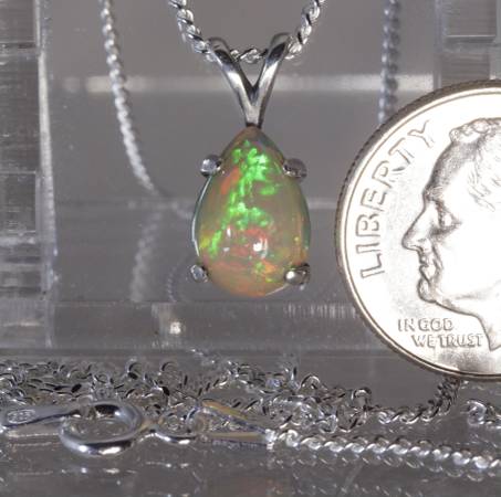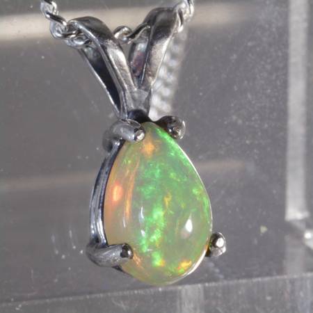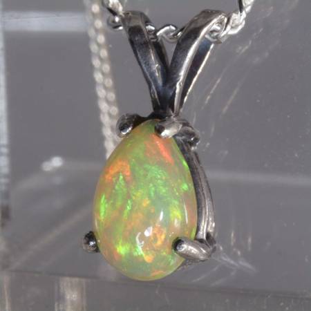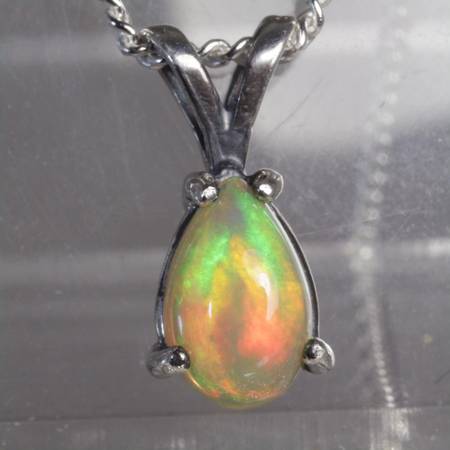 This is a beautiful Opal from Ethiopia. You might see reds or greens or blues or other colors. This is a solid opal, not a doublet, not a triplet. The weight of this gemstone is .82 carat. This gem measures about 8.11 x 5.20 mm. That's about .32 x .20 inch. This gemstone has naturally formed in the earth. I have hand set this gem into this solid .925 sterling silver pendant that is marked. Also included is a solid .925 sterling silver 18 inch chain. The pendant and chain you see in the photos are the pendant and chain you will receive. Photos enlarged to show detail. For size please refer to measurements. inventory #11188. Gift Tag included.