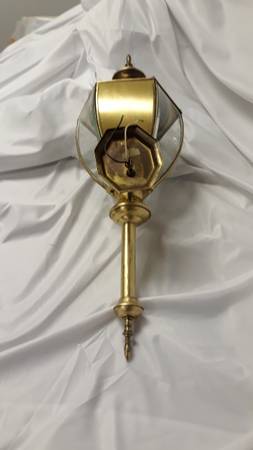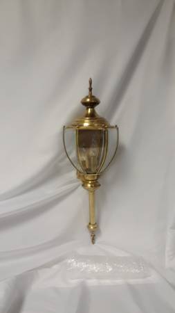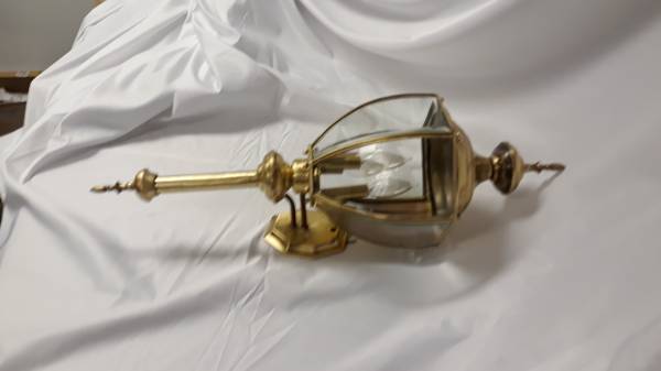 CARRIAGE LAMP - #VINTAGE- for home or building entrance. Brushed finish solid brass 3 bulb design with beveled clear glass. 30"H x 10" from wall. Mounting plate 5 1/2 x 4 x 3/4 " deep. STUNNING !...