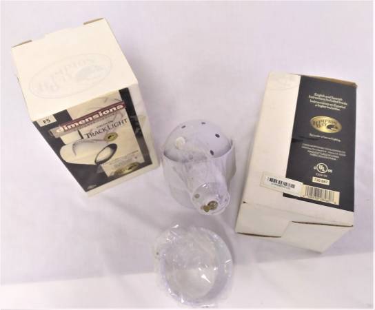 TRACT LIGHT HEADS --PRICE IS FOR 3 ea, all in original box Hampton Bay 50W MAX BULB Track Lighting Halogen head White Painted Finish: NOTE INSIDE BLACK RING EDGING IS MISSING ON ONE LIGHT. THIS...