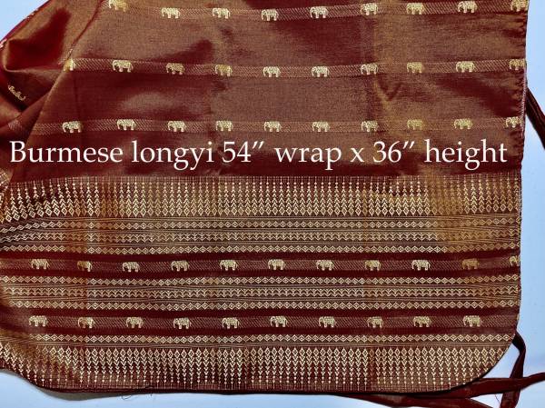 these Burmese [ Myanmar ] wrap skirts are the prevailing dress style for females in this S.E. Asian country : easy on and off, waist ties, great for casual wear, beach cover ups, pair with a coordinating solid color top
