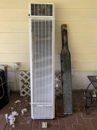 Note this unit is used and sold " as-is"and only selling because the installer did not hook-up the top vent correctly. Nice looking off-white cover.