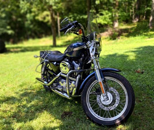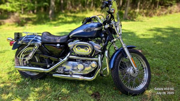 A beautiful 2003 anniversary edition XL 883 Hugger. She gets 60 miles to the gallon, has been treated very well; always kept in the garage and maintained. We have never had any problems with this motorcycle. She is a breeze to ride and so well balanced. If interested just shoot me a text and I will get back to you asap. 😊😎