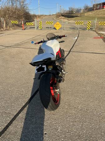 2016 Ducati 821 in White and Red. Bike runs great, stab-bil before storage, stored in garage. Upgraded $1,500 Termi exhaust, Rizoma Mirror, LED chopped tail kit. Oil change each year. Includes original exhaust and original mirrors (not pictured). Full service by Moto Europa early this year.