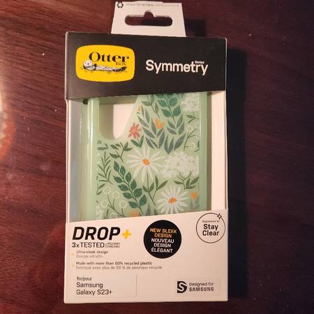 I have for sale a Brand New, Never Used, OtterBox Symmetry cell phone cover that will fit a Samsung Galaxy S23 PLUS. This WILL NOT FIT a S23...ask me how I Know. (See pictures for design)