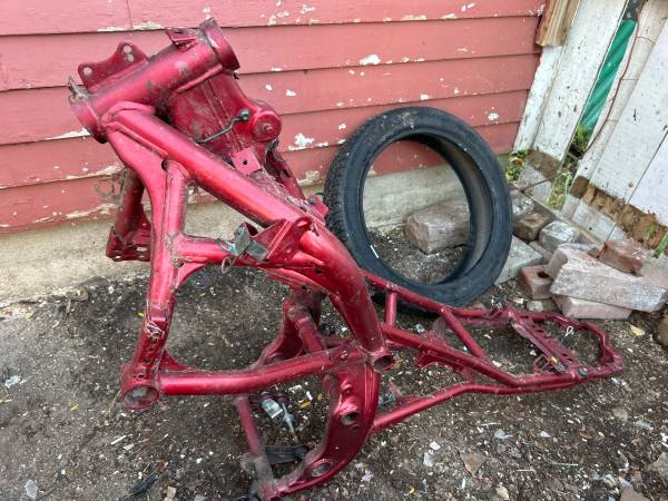 Kawasaki 2006 650 70zr1 motorcycle frame with front shocks red
