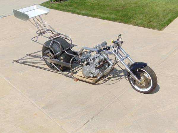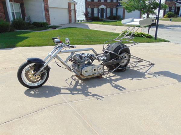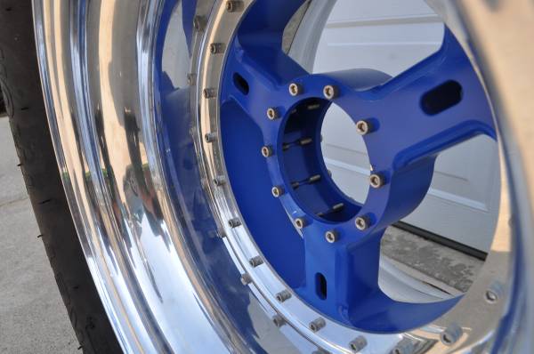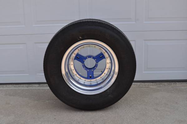 For sale is a 3-piece rear rim for drag bike or pro-street applications. It contains the center and two outer lips. A 2-piece hub will need to be purchased. It is designed to work with Kosman hubs. Those are pretty much universal and many other aftermarket drag racing suppliers also make the same parts. The tube, or valve stem has a very slow leak. Which doesn’t matter if you are racing, but will need to be addressed if you use this for an everyday rider. The tire has tread left, but not new. I am willing to ship the rim only, not the tire. I was planning to use this on my funny bike for motorcycle shows, but never got finished. Drag bike is not for sale.