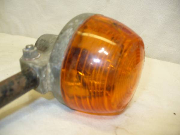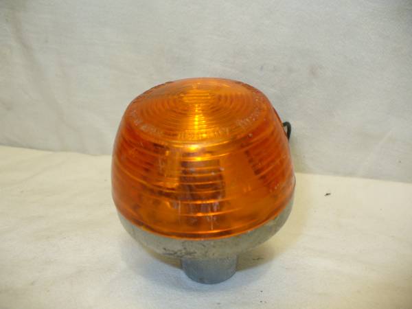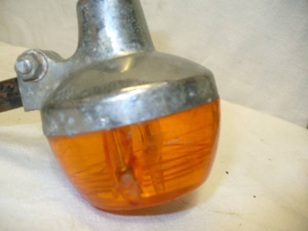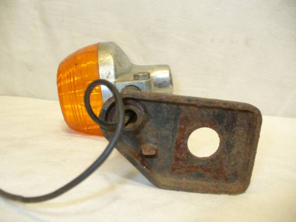 Motorcycle turn signal. Not sure what make it is off of thinking Honda 100? Amber lens reads "STANLEY 6 0845 AU40GH SAE D 67 Made in Japan". Lens has scratches and one crack. Chrome housing has scratches and pitting, Black mounting bracket has some rust.Vintage part sold as is untested for parts or repair. $10. Please call / text 9am - 8pm. Three one 44 zero 2 zero 24 nine.